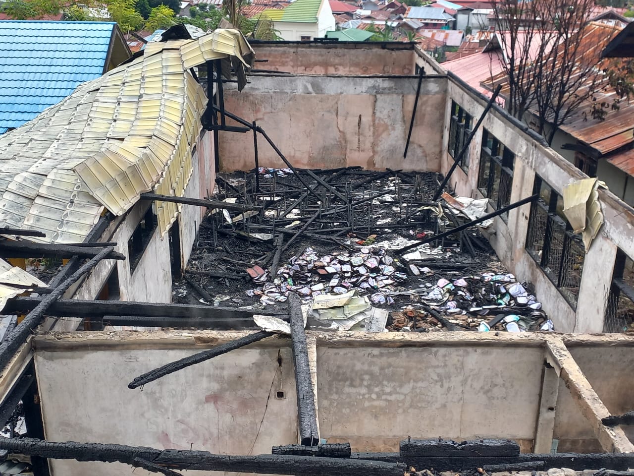 Ia juga menambahkan dari peristiwa kebakaran menghanguskan sebuah ruangan gudang sekolah, 3 ruangan kelas, dan sebagaian atap rumah warga. Sebanyak 4 mobil pemadam kebakaran berhasil memadamkan api.