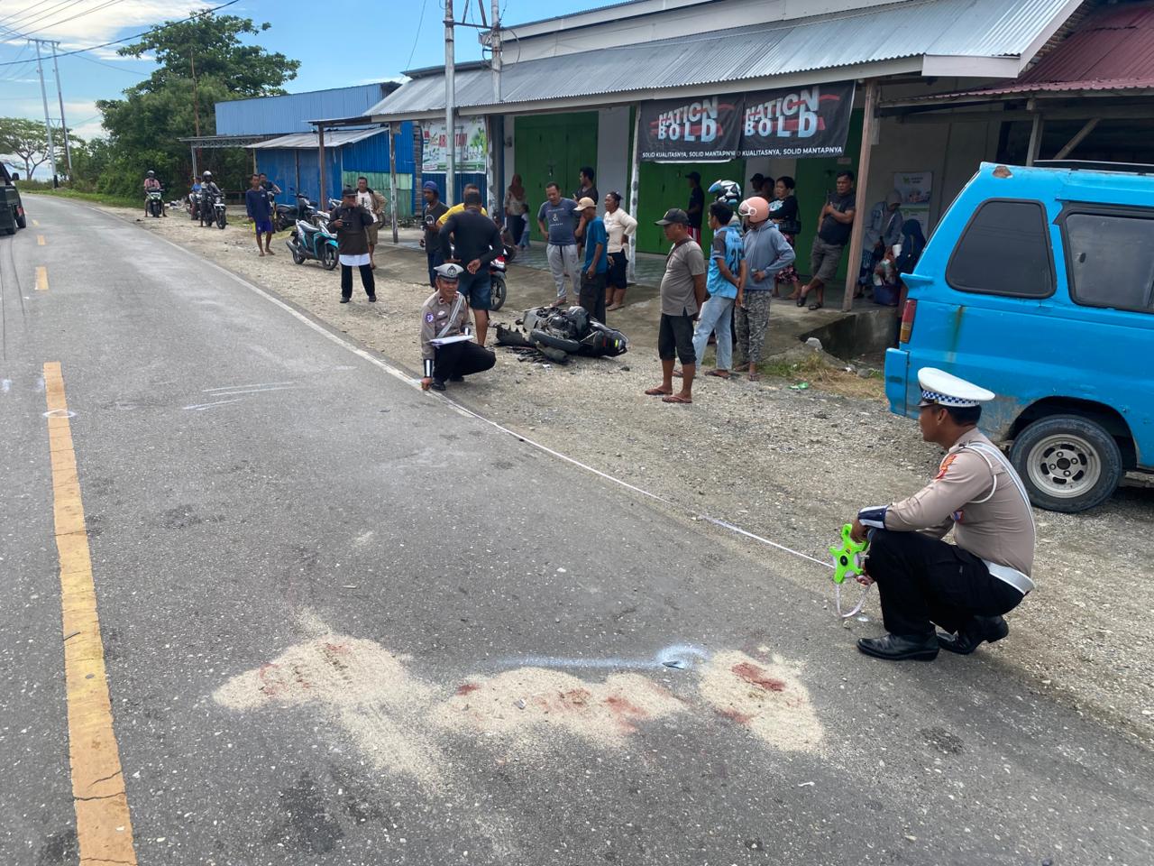 Kegiatan olah TKP oleh Unit Laka Satlantas Polres Banggai ini berlangsung di Jalan Trans Sulawesi Desa Biak, Luwuk Utara, Jumat (31/10/2025) pagi.