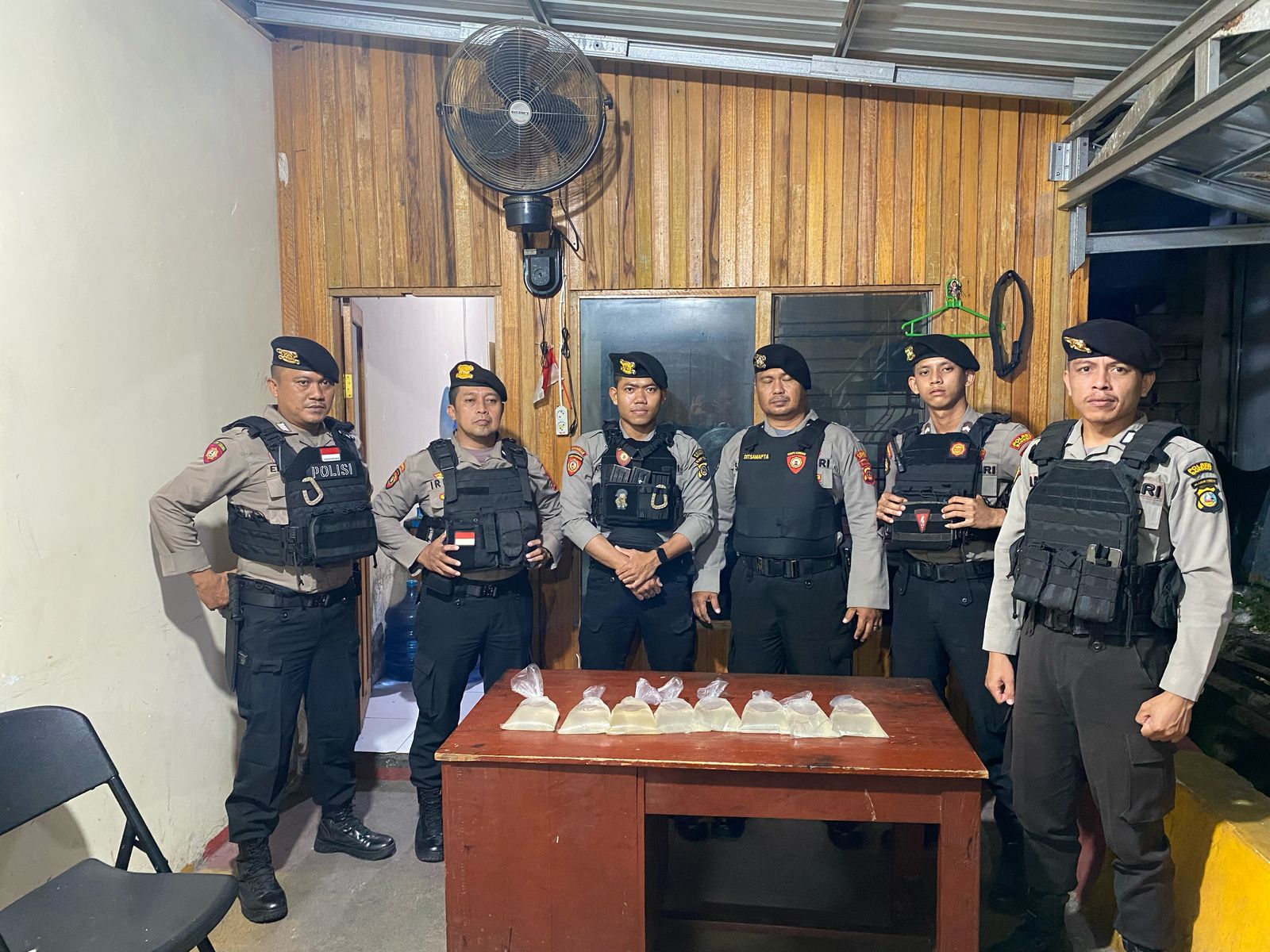 “Dalam razia yang dilakukan, kami amankan 8 kantong miras jenis cap tikus,” Sebut Kasat Samapta, AKP Jimyarto Anasim.