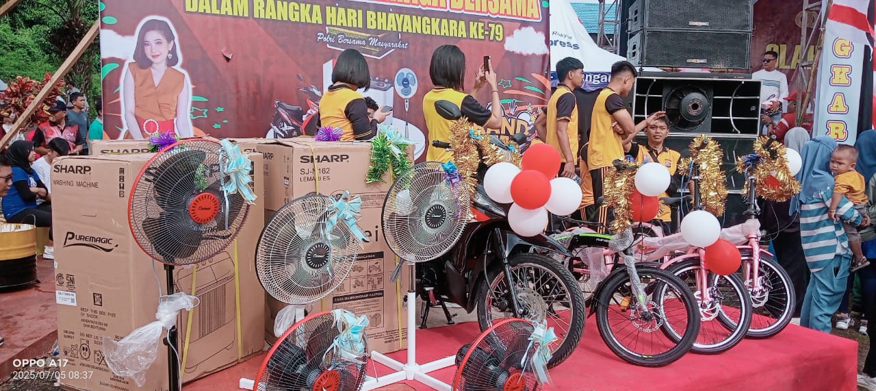 Kemeriahan acara semakin terasa dengan pembagian berbagai doorprize menarik, mulai dari sepeda, televisi, kulkas, kipas angin, hingga hadiah hiburan lainnya. Antusiasme peserta sangat tinggi, terlihat dari semangat mereka mengikuti seluruh rangkaian kegiatan.