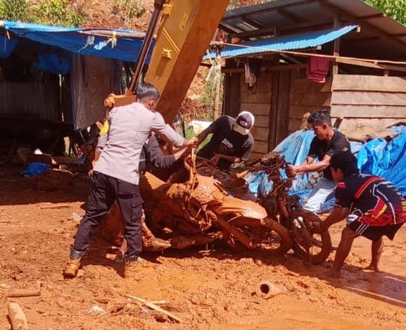 “Hari ini kami telah menurunkan personel Polres Morowali Utara dibantu personel TNI, Brimob dan BPBD untuk melakukan evakuasi kendaraan serta barang-barang warga dan melakukan pembersihan puing-puing bangunan serta menyingkirkan material longsor yang menutupi akses jalan yang menghubungkan kecamatan Soyo Jaya dan Kecamatan Petasia tersebut” Ungkap Kapolres