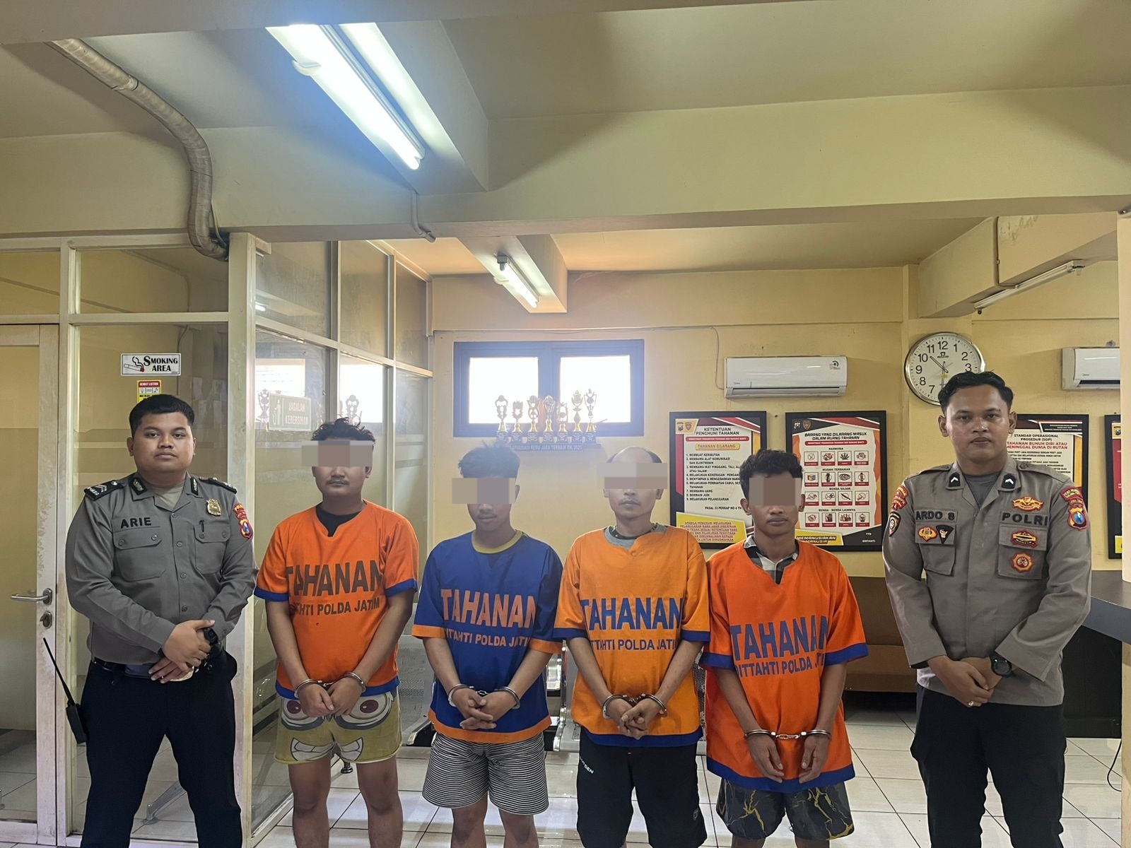 Unit Resmob Satreskrim Polres Pelabuhan Tanjung Perak gerak cepat dan meringkus empat tersangka. Yaitu SBP alias Y, 19, MR alias M. 21, MA, 21, dan ZA, 40, keempatnya warga Surabaya.