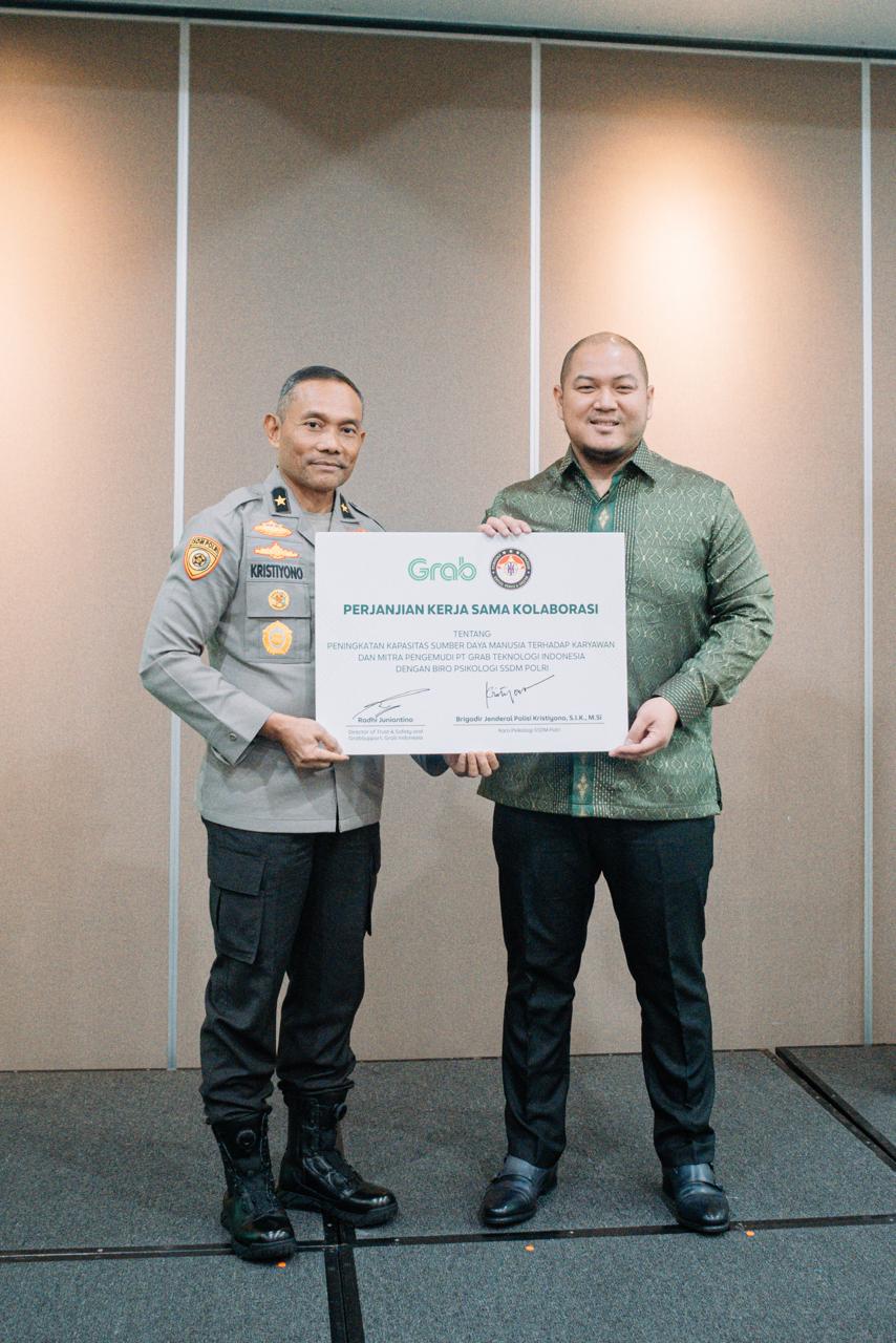Penandatangan kerjasama ini dilakukan Kepala Biro Psikologi SSDM Polri Brigjen Pol Kristiyono dan Director Trust dan Safety PT Grab Teknologi Indonesia Radhi Juniantino.