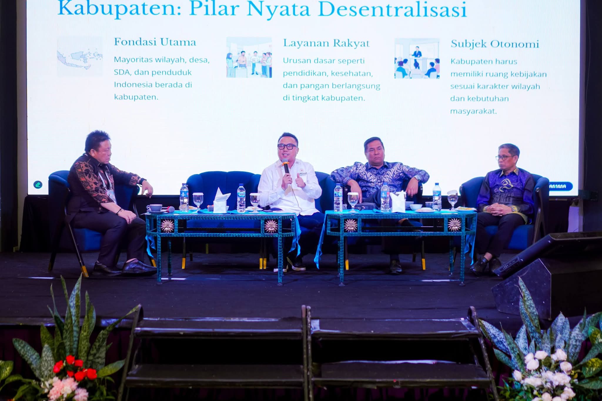 Ia menekankan bahwa kabupaten tidak boleh hanya diposisikan sebagai pelaksana teknis kebijakan pusat, melainkan harus diperlakukan sebagai subjek otonomi yang memiliki ruang kebijakan sesuai karakter wilayah dan kebutuhan masyarakatnya.