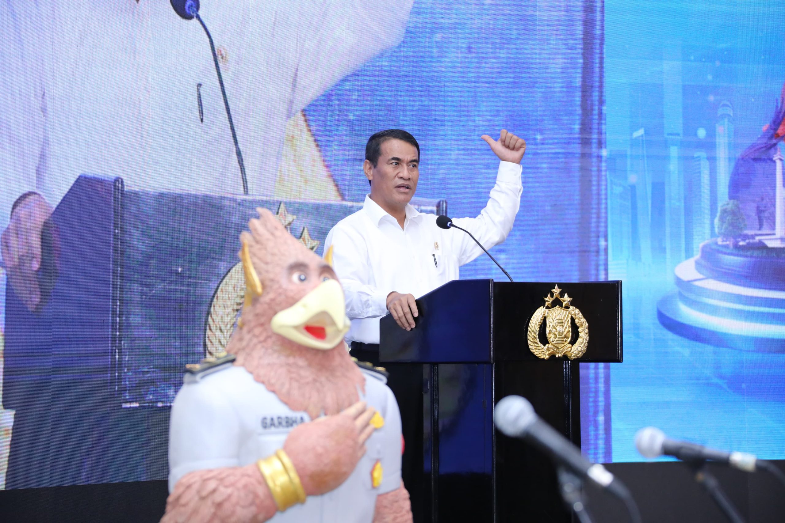 Arahan Asisten Kapolri Bidang SDM disambut baik Menteri Pertanian Andi Amran Sulaiman yang juga ikut hadir dalam Rakorbin SDM Polri dan PNS Polri sebagai narasumber eksternal. Di kesempatan ini ia menyampaikan paparan selama kurang lebih 60 menit tentang strategi mencapai kemandirian pangan Indonesia emas 2045.