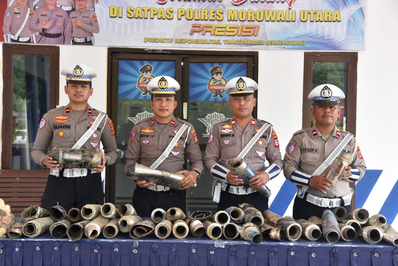 “Menindaklanjuti keluhan masyarakat yang begitu tinggi terhadap pengendara yang menggunakan knalpot Brong yang suara kebisingannya sangat mengganggu, maka kami dari Satuan Lalu Lintas Polres Morowali Utara melaksanakan Razia dan melakukan penindakan terhadap pengendara berknalpot brong” terang Ipda Gerfin
