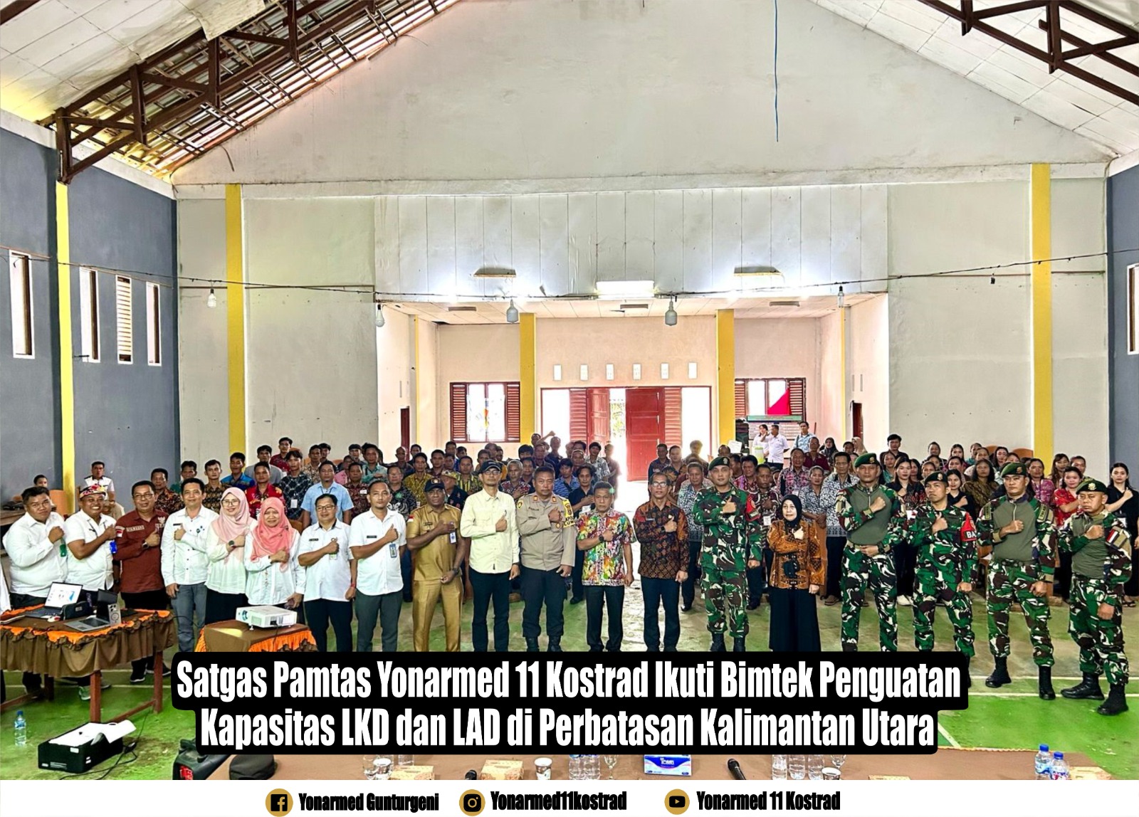 Nunukan, Globalrakyat.com – Satgas Pamtas Yonarmed 11 Kostrad turut ambil bagian dalam kegiatan Bimbingan Teknis (Bimtek) Peningkatan Kapasitas Lembaga Kemasyarakatan Desa (LKD) dan Lembaga Adat Desa (LAD), serta Fasilitas Pemberdayaan Masyarakat Desa Terdepan Perbatasan Negara sebagai bagian dari Sistem Pertahanan dan Keamanan (Hankam) Tahun Anggaran 2025.