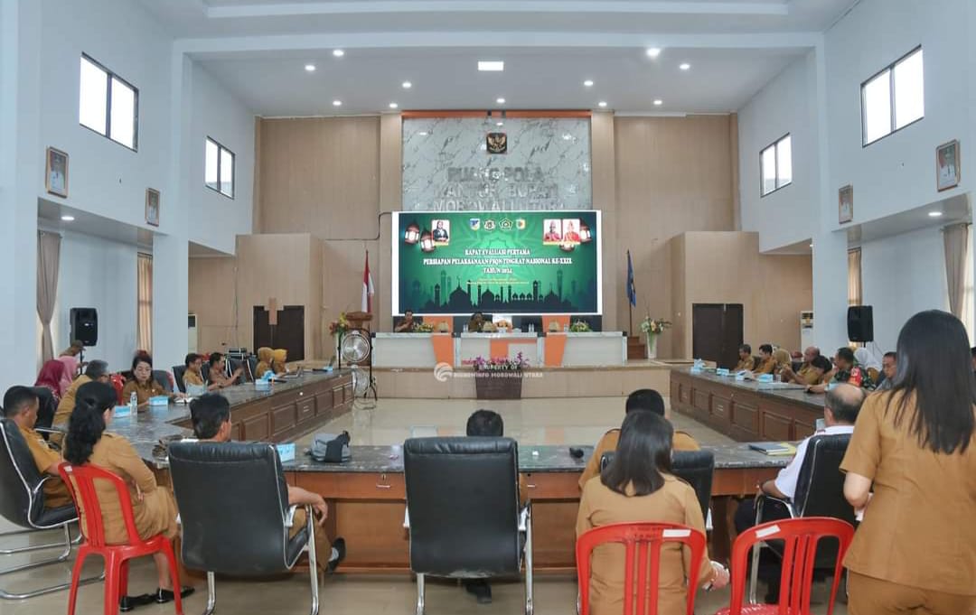 Morowali-Utara, Globalrakyat.com –Sekretaris Daerah (Sekda) Kabupaten Morowali Utara (Morut), Ir. Musda Guntur, MM, memimpin rapat evaluasi tahap pertama dalam rangka persiapan Festival Seni Qasidah Nasional (FSQN) ke-XXIX tahun 2024. Rapat berlangsung di Ruang Pola, Senin (04/11/2024), dan dihadiri jajaran panitia lokal yang terdiri dari berbagai elemen termasuk TNI, POLRI, dan ASN.