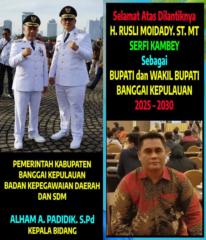 Selamat Dilantiknya Bupati Dan Wakil Bupati Banggai Kepulauan Admin Global RakyatFebruary 26, 202579 Views Post Views: 79 Baca Juga Berita Ini: Sambut HUT Bayangkara Ke 79,Polsek Liang Bersinergi Dengan Koramil 1308-11 Liang Bhakti Sosial Di Desa Tunggaling Related postsDi Duga Kuat Pemecatan Lewi Salila Salah Seorang Pekerja Di SPPG MBG Sambiut Tidak Sesuai ProsedurPemkab Bangkep Dan PT Bank Mandiri Tindak lanjuti Inplementasi MOU Pengelolaan Keuangan Perumda Air Minum Paisu MolinoTanggul Pantai Kombutokan Patah Akibat Banjir Bandang, Kontraktor Pastikan PerbaikanSelamat Tahun Baru 2026Selamat Tahun Baru 2026Selamat Tahun Baru 2026