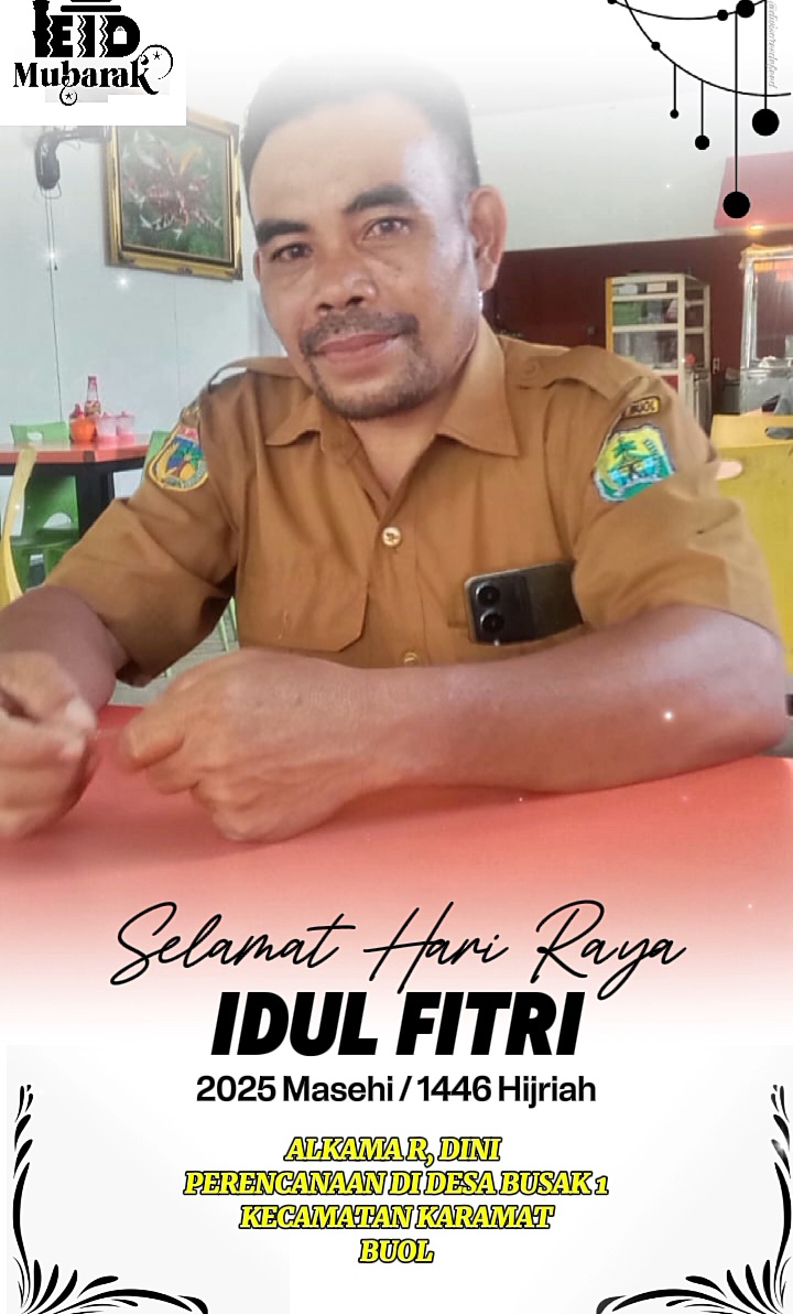 Selamat Hari Raya Idul Fitri 1446 H/2025 M Admin Global RakyatMarch 29, 202586 Views Post Views: 86 Baca Juga Berita Ini: Apel Bersama Pemerintah Desa Busak 1 Awali Tahun 2025 Dengan Semangat Baru Related postsHadapi Keterbatasan Anggaran, Pemkab Buol Tekan Disiplin Dan Profesionalisme ASNApel Gabungan, Wabup Tekankan Disiplin Dan Peningkatan Kinerja ASNWakil Bupati Buol bersama Ibu, Hadiri Acara Pisah Sambut Danlanal Toli-Toli BuolKoperasi Desa Merah Putih Busak 1 Gelar RAT Tahun Buku 2025, Perkuat Transparansi Dan Kesejahteraan AnggotaMomen Ramadhan: Pengurus DPC PJS Dan Ketua DPD PJS Provinsi Gelar Bagi-bagi TakjilPerkuat Tali Silaturahmi Pengurus DPC PJS Gelar Pertemuan Buka Bersama Dengan Ketua DPD Provinsi PJS