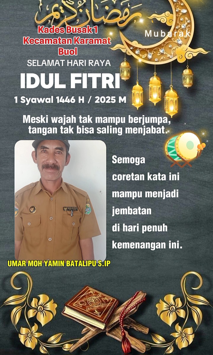 Selamat Hari Raya Idul Fitri 1446 H/2025 M Admin Global RakyatMarch 29, 202594 Views Post Views: 94 Baca Juga Berita Ini: Puluhan Personel Polres Buol Penuhi Persyaratan Naik Pangkat Dengan Mengikuti Ujian Beladiri Pori Related postsJembatan Negerilama Kabupaten Buol Ramai Dikunjungi Masyarakat Pasca Sahur Puasa PertamaStabilitas Pangan Jadi Prioritas, Sat Reskrim Polres Buol Terjunkan Unit Tipidter Pantau Fluktuasi Harga PasarDukung Penguatan Gizi Dan Pencegahan Stunting Di Buol, Polres Buol Resmikan SPPG PolriPerguruan Pencak Silat Satria Muda Indonesia (PPSI SMI) Komwil Buol Meriahkan HUT ke-1, Car Free Day 2026Kadis Disporapar Hadiri Kegiatan Ulang Tahun Ke-1 Hari Berpinangan Bebas Kendaraan (Car Free Day) 2026Delapan Belas Tahun Berstatus Transmigrasi, Masyarakat Mengajukan Permohonan Penetapan Wilayah Sebagai Desa Definitif Kepada Pemerintah Daerah
