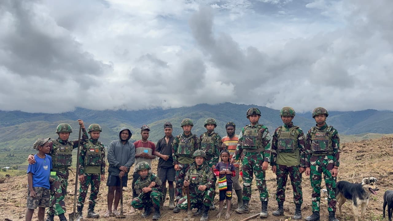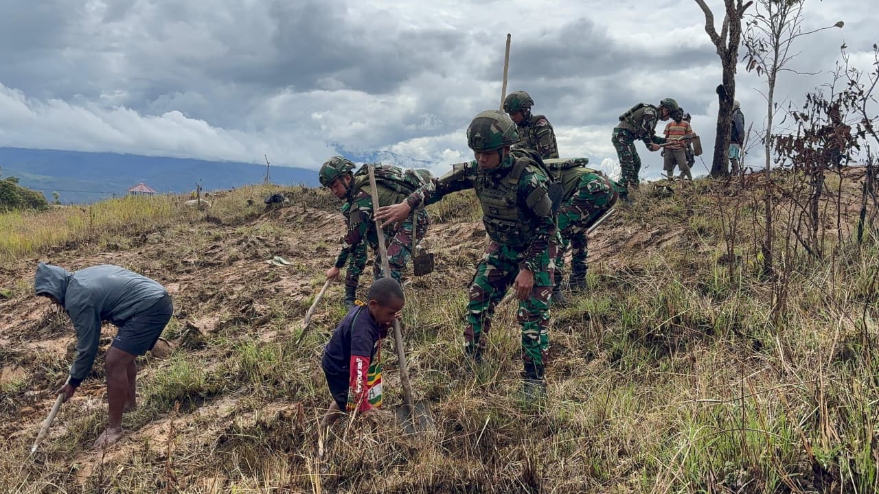 Kegiatan pembukaan lahan pertanian tersebut dilaksanakan di Distrik Napua, Kabupaten Jayawijaya, Papua Pegunungan. Dengan penuh semangat, personel Satgas Yonif 521/DY bersama warga setempat bahu-membahu membersihkan lahan, menebang semak belukar, serta merapikan area yang akan dijadikan lahan tanam.