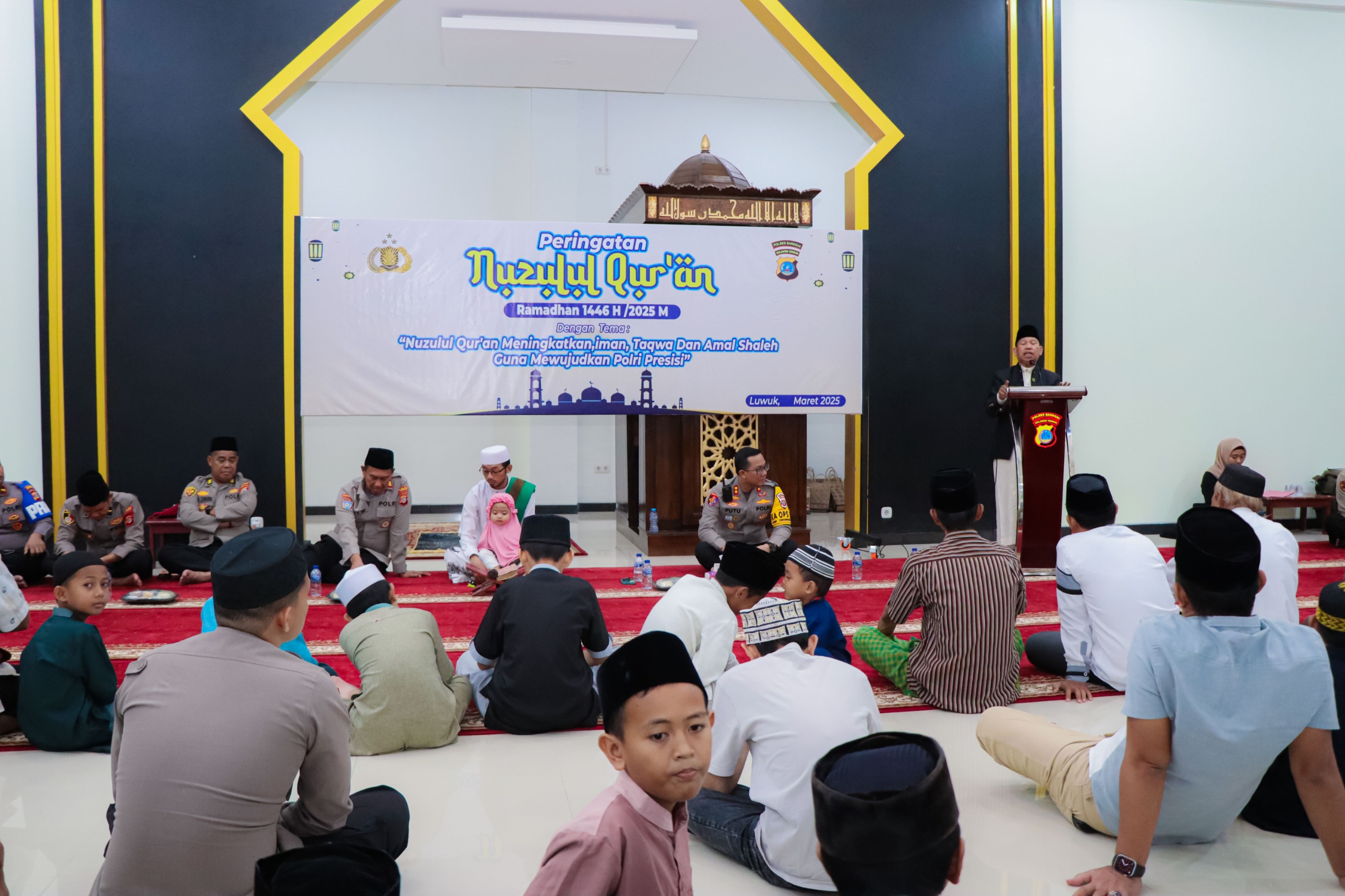 Banggai_Globalrakyat.com_Jajaran Polres Banggai memperingati Nuzulul Qur’an 1446 H yakni malam turunya kitab suci Al-Qur’an di Masjid Ar-Rahman Mapolres Banggai, Jumat (21/3/2025) malam.