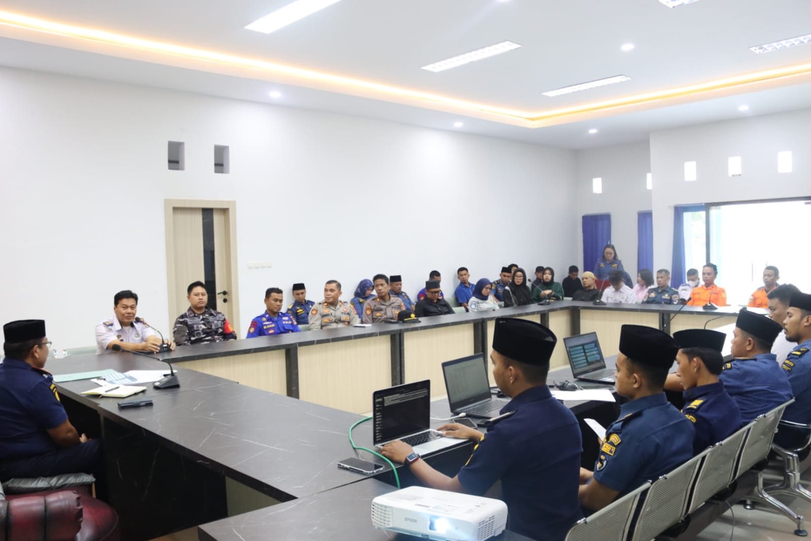 Rapat tersebut dihadiri oleh TNI AL, Kesatuan Pelaksanaan Pengamanan Pelabuhan (KPPP), Basarnas, serta instansi terkait lainnya yang memiliki peran penting dalam penyelenggaraan Angleb Tahun 2026/1447 Hijriah. Para peserta membahas langkah-langkah koordinasi untuk memastikan kegiatan pelayaran berjalan aman, lancar, dan sesuai prosedur operasional standar.