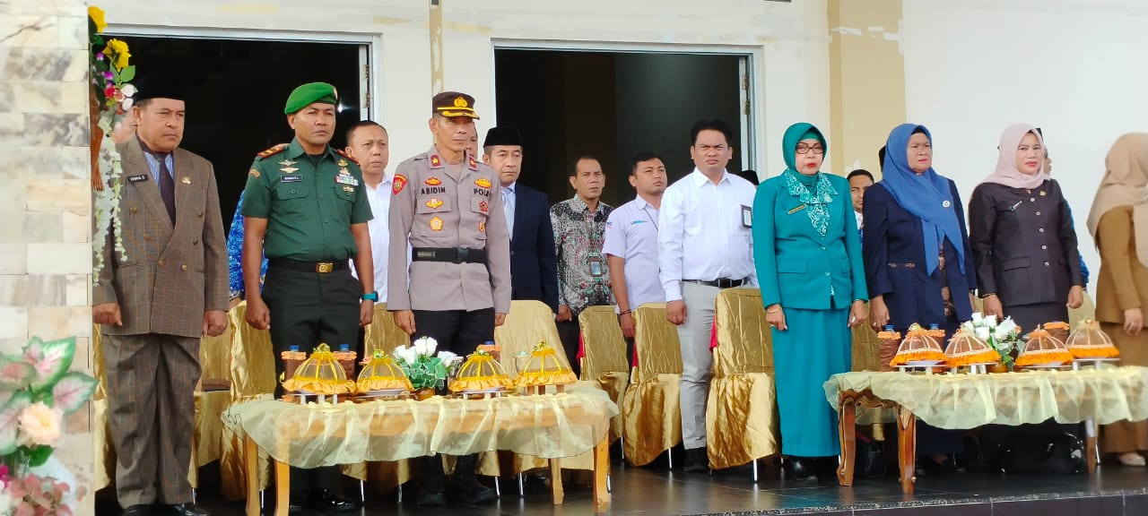 Upacara berlangsung khidmat dan dihadiri sejumlah pejabat penting, antara lain Asisten II Setda Bangkep Iswan Saleh, S.Sos, Waka Polres Kompol Abidin, Danramil Tinangkung Pelda Rahmad, Kepala BNN Bangkep Oslan Daud, SKM, serta pimpinan cabang Bank Sulteng dan Bank Mandiri. Turut hadir pula para kepala OPD, kabag, dan eselon III se-Kabupaten Banggai Kepulauan.