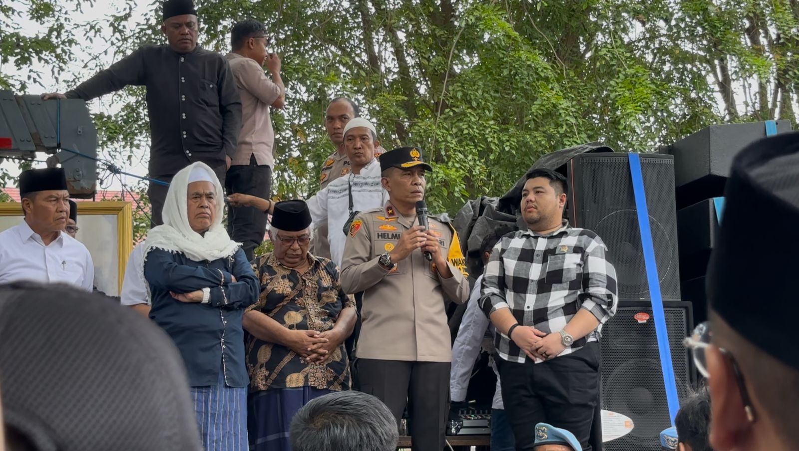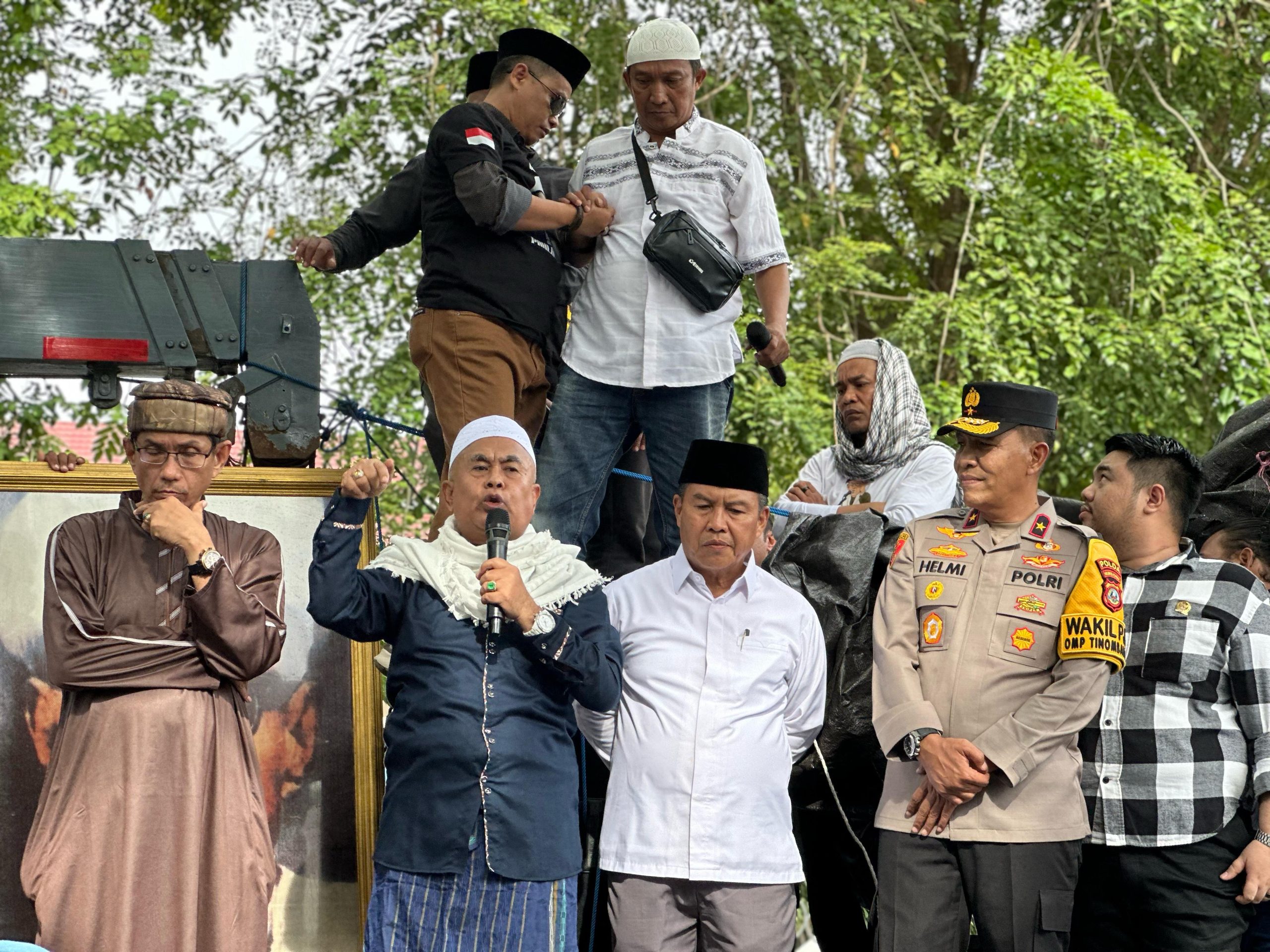 Dihadapan ribuan masa aksi, Wakapolda Sulteng memastikan proses pelanggaran Fuad Plered terhadap Guru Tua sedang berjalan.