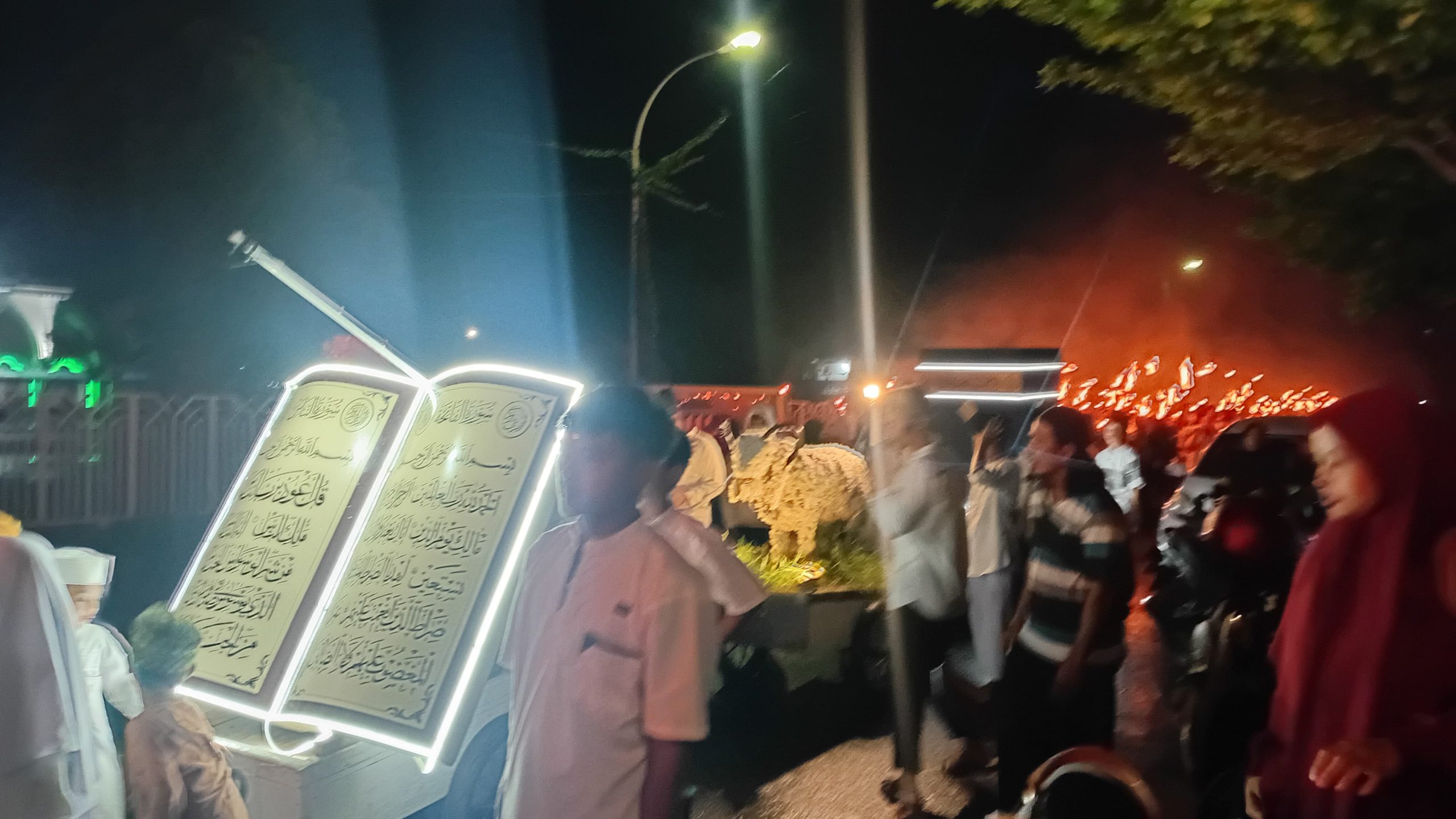Pawai obor kali ini turut dimeriahkan oleh berbagai tampilan kreatif bernuansa islami. Salah satunya dari Masjid Nurul Yaqin yang mendapat nomor urut 9. Mereka menampilkan miniatur hasil kerajinan tangan, seperti bentuk kambing, replika Ka’bah, dan Al-Qur’an, yang menjadi daya tarik tersendiri bagi penonton.