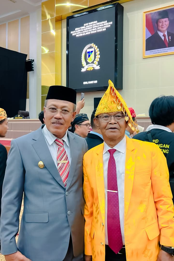 Dalam acara tersebut, Gubernur Sulawesi Tengah sebelumnya, H. Rusdi Mastura, dan Wakil Gubernur, DRS. H. Ma’Mun Amir, menyerahkan jabatan kepada Gubernur terpilih periode 2025-2030, Dr. Anwar Hafid, M.Si, dan Wakil Gubernur terpilih, dr. Reny A. Lamadjido, Sp.PK., M.Kes.