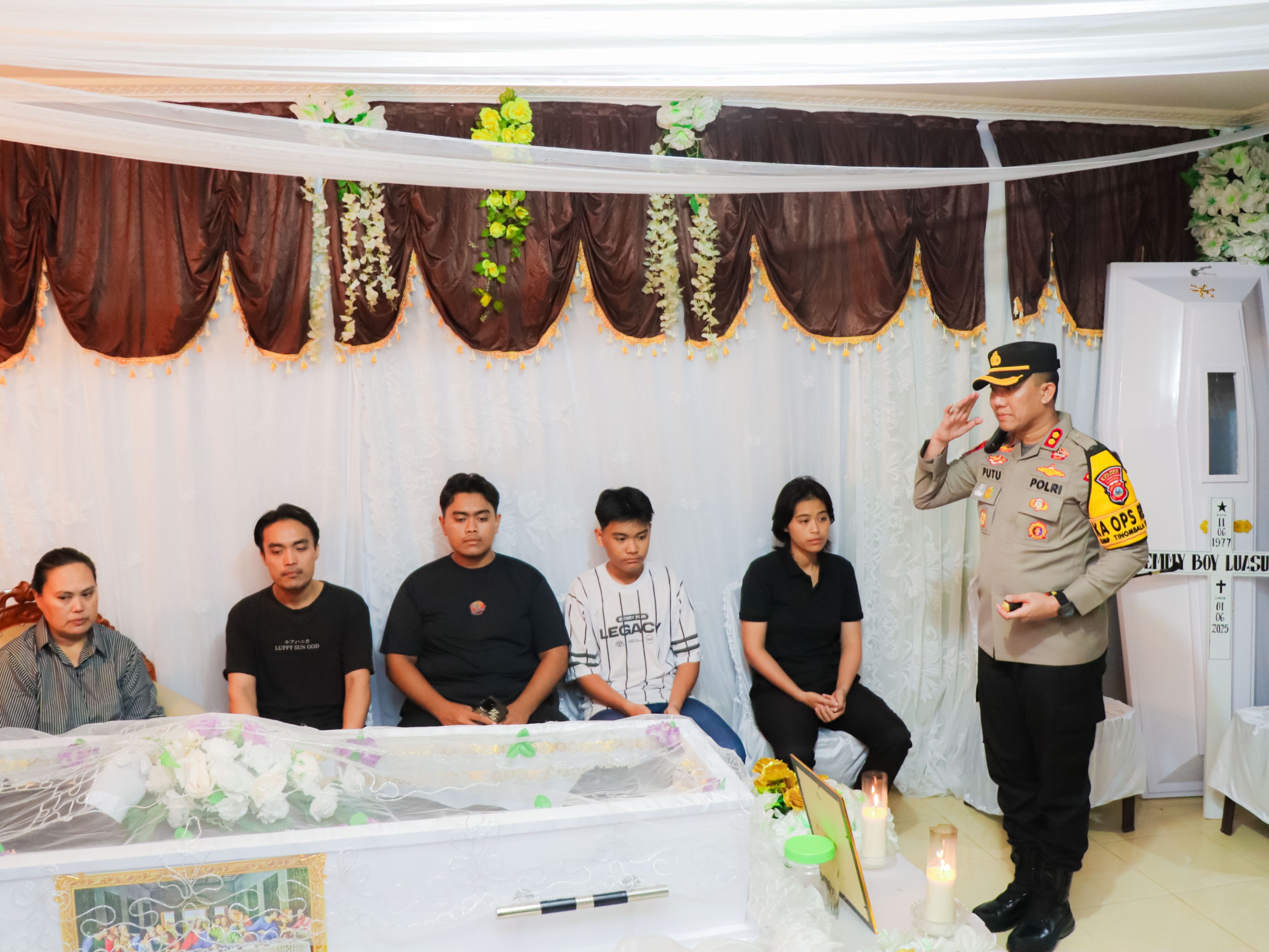 Dalam kesempatan tersebut, AKBP Putu menyampaikan belasungkawa secara langsung kepada keluarga almarhum. Ia juga memberikan penghormatan atas dedikasi dan pengabdian almarhum selama bertugas.