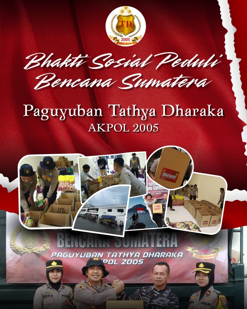Paguyuban Tathya Dharaka Akpol 2005 menunjukkan kepedulian sosial dengan menggelar bakti sosial berupa pengiriman ribuan paket sembako untuk warga terdampak bencana alam di wilayah Sumatera.
